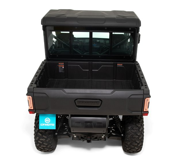 Für Sicherheit und Kontrolle sorgen hydraulische Scheibenbremsen mit ABS an allen vier Rädern. Mit einer Höchstgeschwindigkeit von bis zu 90 km/h ist das UTV sowohl für schnelle Fahrten als auch für den täglichen Einsatz bestens geeignet.
