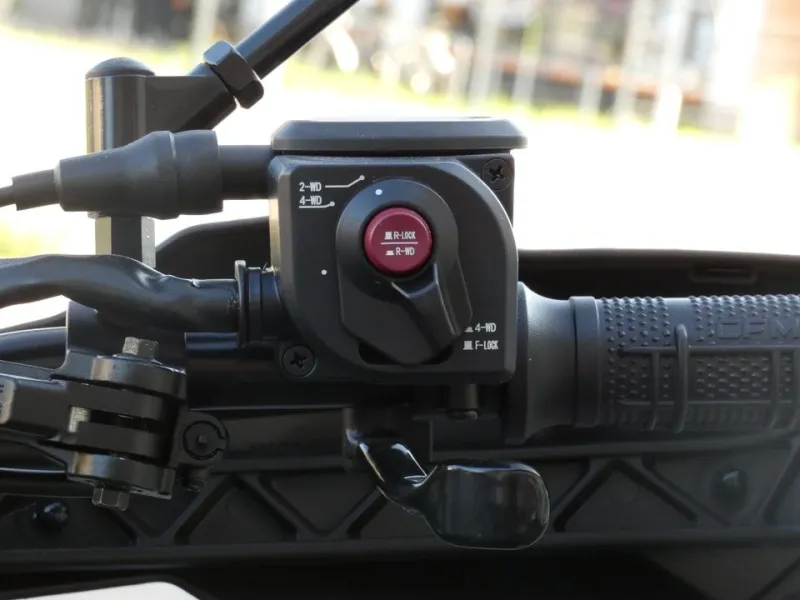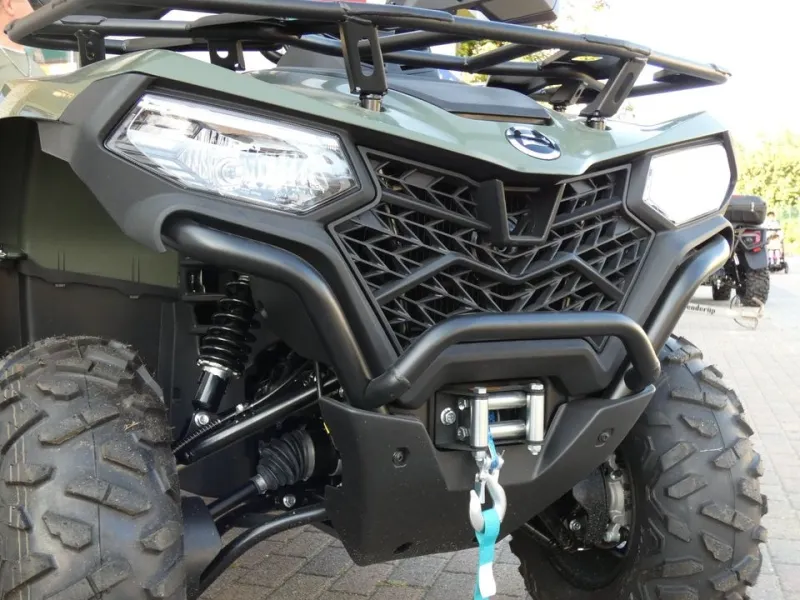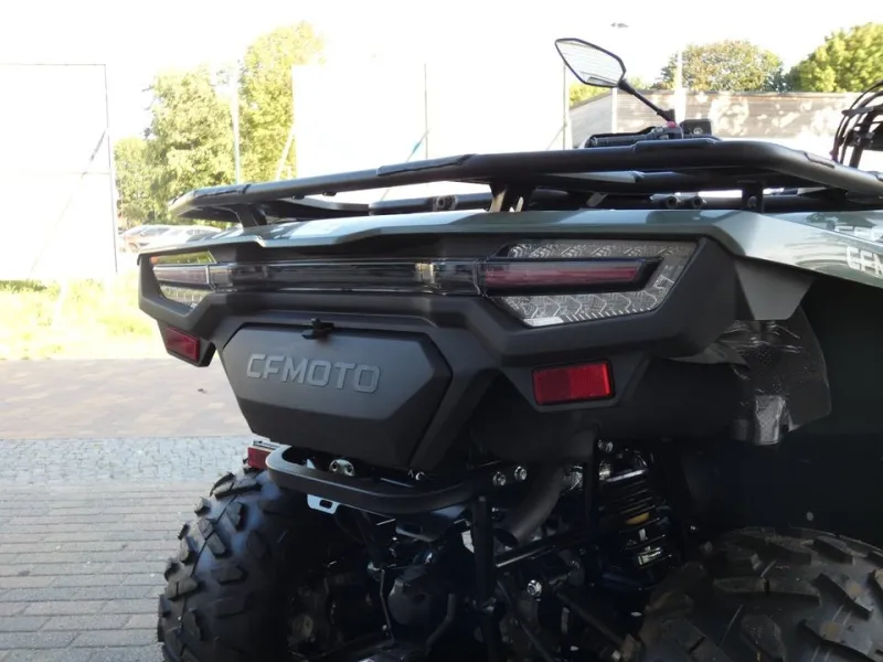 Ein manuell zuschaltbarer Allradantrieb, eine zuschaltbare Differentialsperre und ein stufenloses CVT-Getriebe mit Retour- und Unterstützungsgang sind wie bei allen CFMOTO-ATVs serienmäßig.