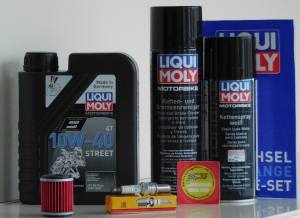 Wartungskit für den Service, passend für: Fantic XMF 125 Serviceset für die Wartung, besteht aus: 1 Liter - Liqui Moly Motorenöl 10W-40 Street 4T Synthese Technologie API SL / Jaso MA2 1x Zündkerze von NGK passend zum Fahrzeug 1x Hiflo Ölfilter passend zum Fahrzeug 1x Kettenreiniger Racing 500 ml Spraydose von LiquiMoly 1x Kettenfett Racing weiß 400 ml Spraydose von LiquiMoly 1x Ölwechselset von LiquiMoly 1x Original MotorFunSports ® selbstklebende Servicemarke für durchgeführte Wartung