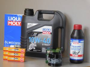 Wartungskit für den Service, passend für: Honda GL 1800 Goldwing Serviceset für die Wartung, besteht aus: 4 Liter - Liqui Moly Motorenöl 10W-40 Street 4T Synthese Technologie API SL / Jaso MA2 0,5 Liter Liqui Moly Getriebeoel für den Kardanantrieb SAE 80W API GL5 / MIL-L-2105 C/D 6x Zündkerze von NGK passend zum Fahrzeug 1x Ölfilter von Hiflofiltro passend zum Fahrzeug 1x Ölwechselset von LiquiMoly