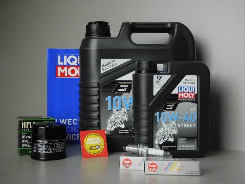 Wartungskit für den Service, passend für: Kawasaki VN 2000 Serviceset für die Wartung, besteht aus: 5 Liter - Liqui Moly Motorenöl 10W-40 Street 4T Synthese Technologie API SL / Jaso MA2 1x Ölfilter von Hiflofiltro passend zum Fahrzeug 2x Iridium Zündkerze von NGK passend zum Fahrzeug 1x Ölwechselset von LiquiMoly