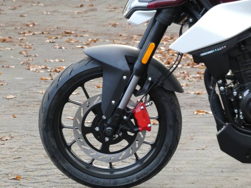 Motortyp Einzylinder-Viertaktmotor, flüssigkeitsgekühltMax. Leistung 10 kW / 9500 rpmMax. Drehmoment 11,4 Nm / 7500 rpmGetriebe 6-Gang-SchaltgetriebeZündung ECUStarter E-StarterHubraum 124,8 ccKraftstoff Benzin (95 Oktan)ChassisBremse vorne Hydraulische Scheibenbremse mit ABS, Bremsscheibe Ø300mmBremse hinten Hydraulische Scheibenbremse mit ABS, Bremsscheibe Ø218mmRadaufhängung vorne Upside down TeleskopfedergabelRadaufhängung hinten Ein FederbeinReifendimension vorne 100/80-17Reifendimension hinten 130/70-17Felgendimension vorne 2,75x17Felgendimension hinten 3,50x17Dimensions & MassesEigengewicht fahrbereit 144 kg*Höchstzulässiges Gesamtgewicht *Länge 2074 mm*Breite 810 mm*Höhe 1100 mm*Sitzhöhe 805 mm*Sitzplätze 2Max. Kapazität Kraftstofftank 10,5 l*