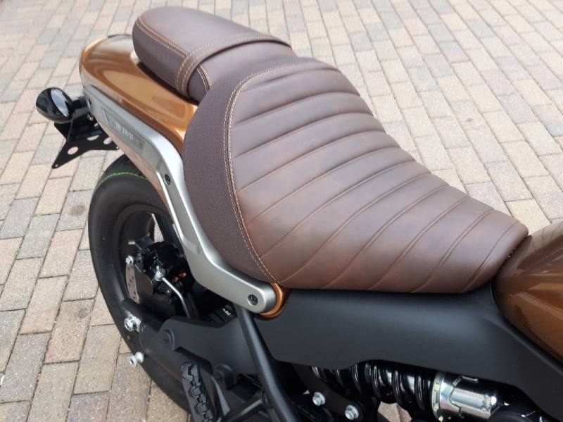 Die 2-teilige Sitzbank mit abgestepptem Fahrersitz bietet hohen Fahrkomfort, auch auf längeren Touren. Das authentische Cruiser-Styling verleiht der SRV 550 ST ihr eigenständiges Design.