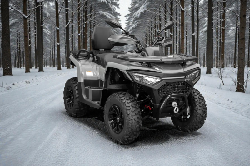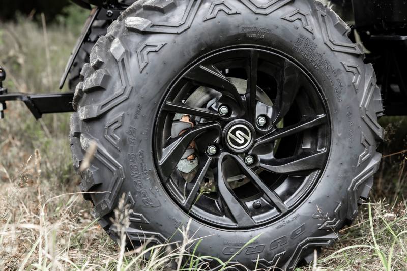 Zuschaltbarer 4×4-Antrieb und manuell aktivierbare Differenzialsperre (Front) garantieren Traktion auf jedem Untergrund – ganz egal ob Schotter, Matsch oder Steigung. Aktivierung bequem vom Lenker aus.