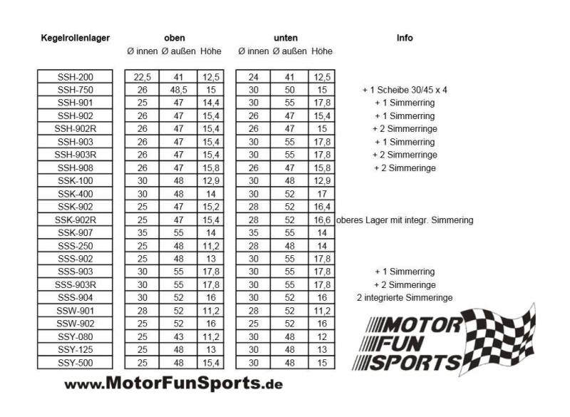 Suzuki Lenkkopflager Satz, SSS 250